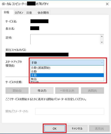 自動(延滞開始)・・・・・他の自動起動サービスが全て起動されてから起動されます。