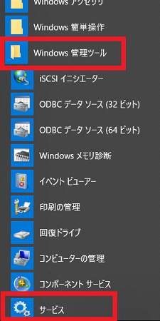 (1)スタートメニューから[管理ツール] - [サービス]を選択します。