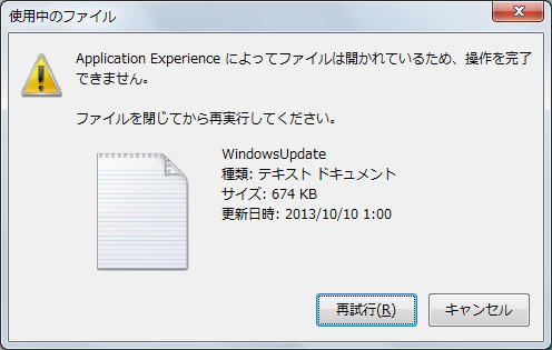 ファイルを編集したり削除しようとした場合、他のプロセスが開いていて編集・削除できないことがあります。このような場合、ファイルを開いているプロセス(アプリケーションやサービスなど)を終了させてからファイルを編集・削除する必要があります。そういう場合は openfiles でファイルを開いているプロセスを調査することが出来ます。