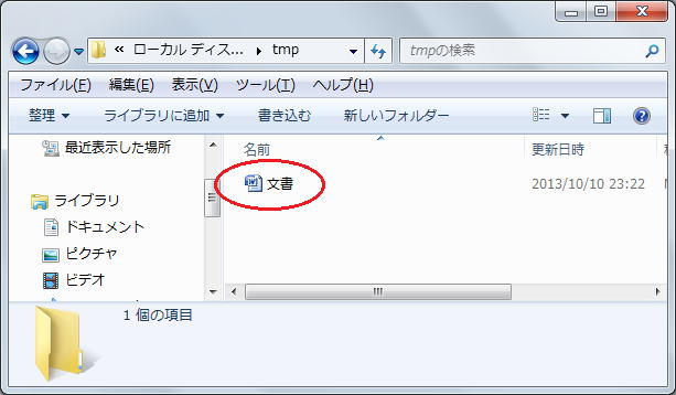 以下のとおり、ワードファイルの (.doc) 拡張子は表示されません。