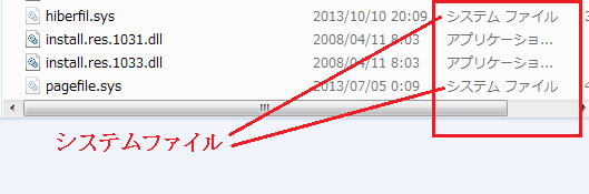 システムファイルとは、エクスプローラで「システム ファイル」と表示されるファイルです。